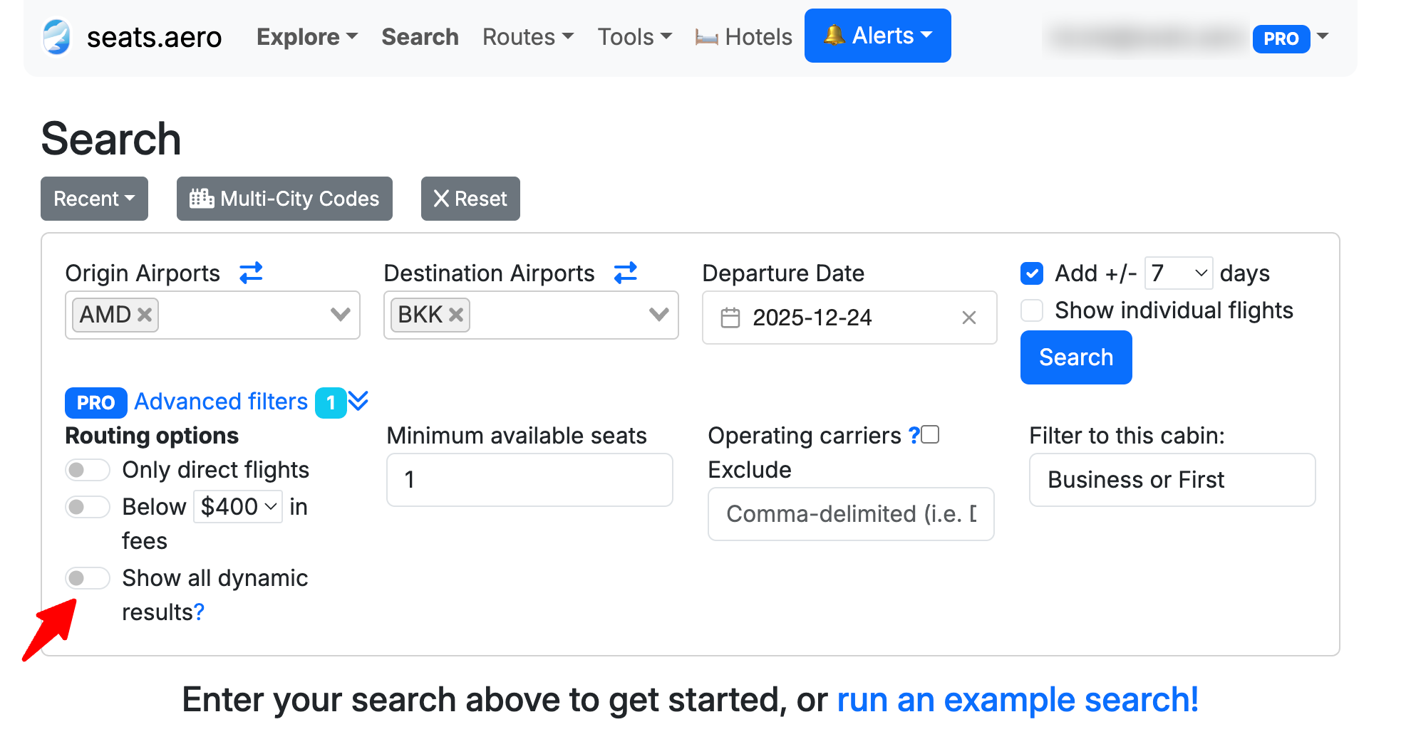 In the Search page, open Advanced filters and toggle Show all dynamic results.