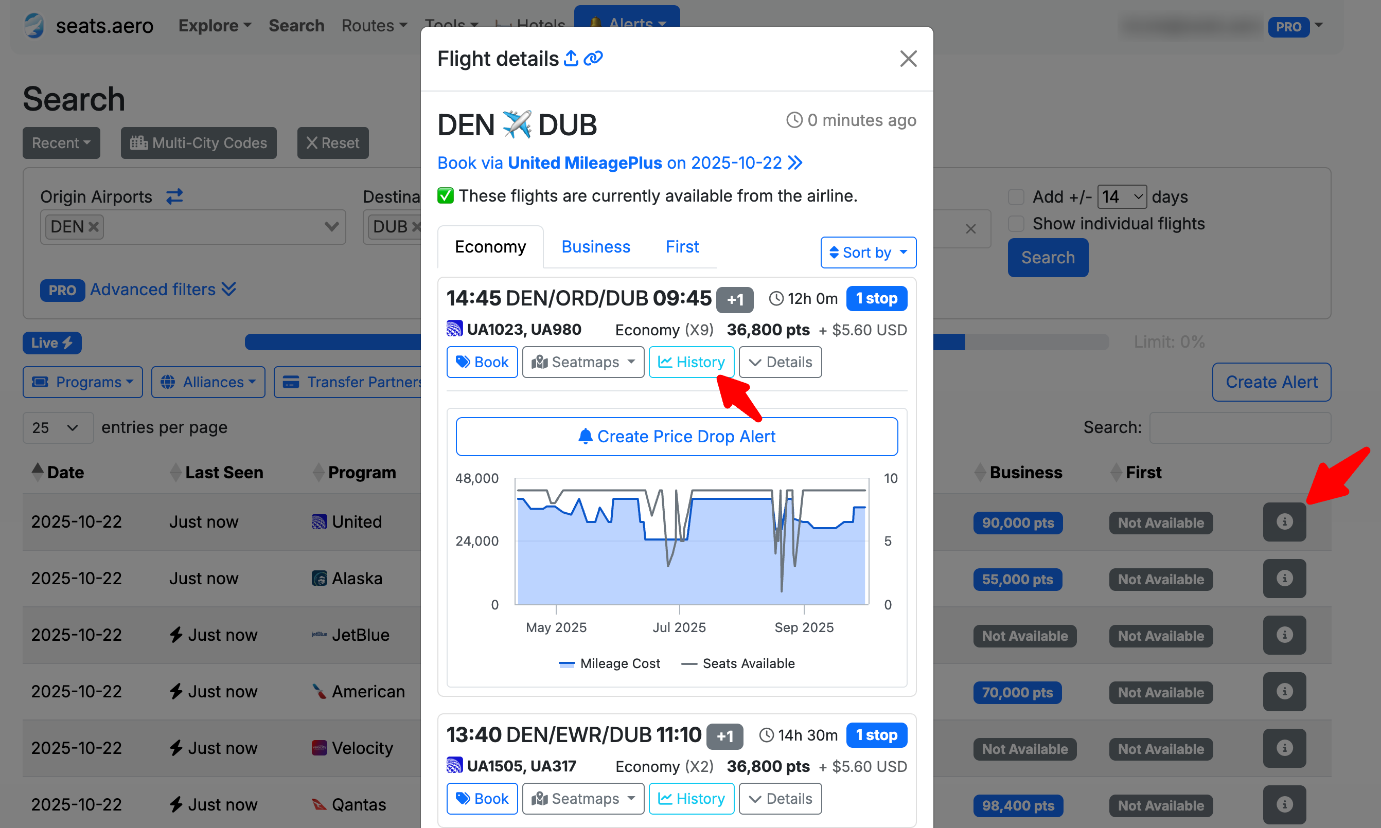 Price History (also called Fare History) lets you see how award seat availability and pricing have changed over time. Instead of only seeing what is available today, you can spot trends, identify patterns, and decide the best time to book.